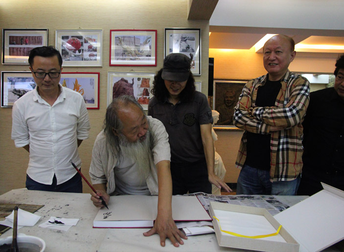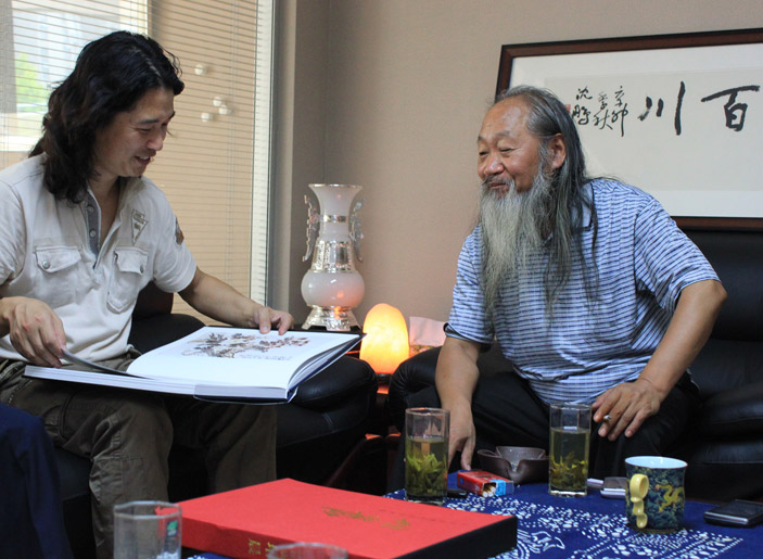 徐培晨教授向東郭介紹自己的猿猴畫作