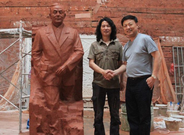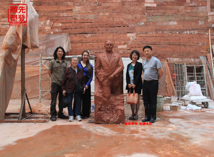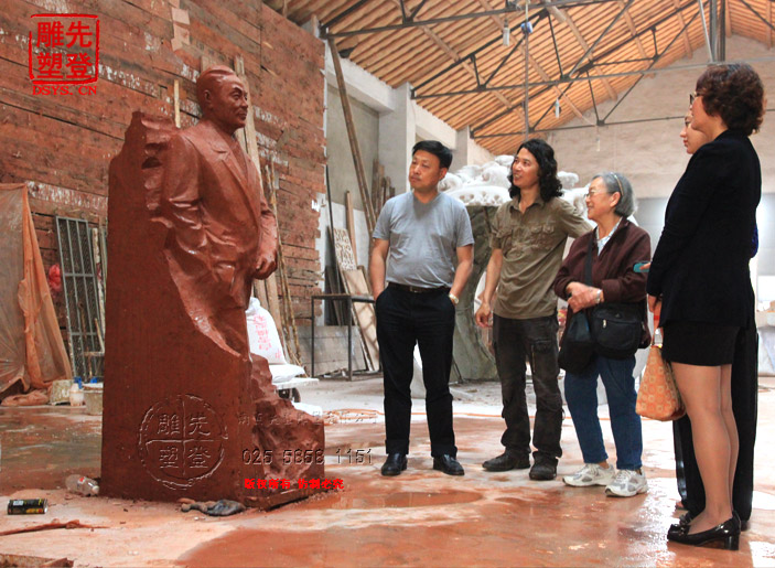 先登雕塑公司,東郭雕塑工作室受有關(guān)部門(mén)委托,為東南大學(xué)楊廷寶故居創(chuàng)作青銅全身像,楊廷寶之女,楊士英教授及其孫女、潘翔處長(zhǎng)和相關(guān)領(lǐng)導(dǎo)蒞臨先登雕塑公司指導(dǎo)