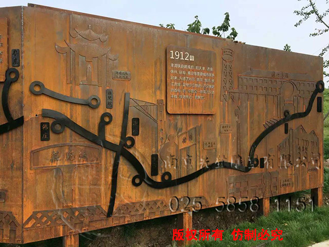 鋼板浮雕《老鐵路》2016年4月安裝于南京市浦口區滁河邊