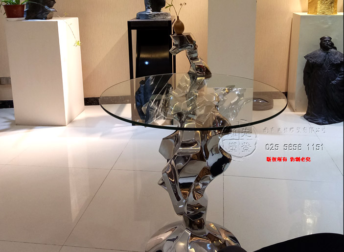 不銹鋼鏡面光圓桌太湖石個性藝術桌子玻璃圓桌